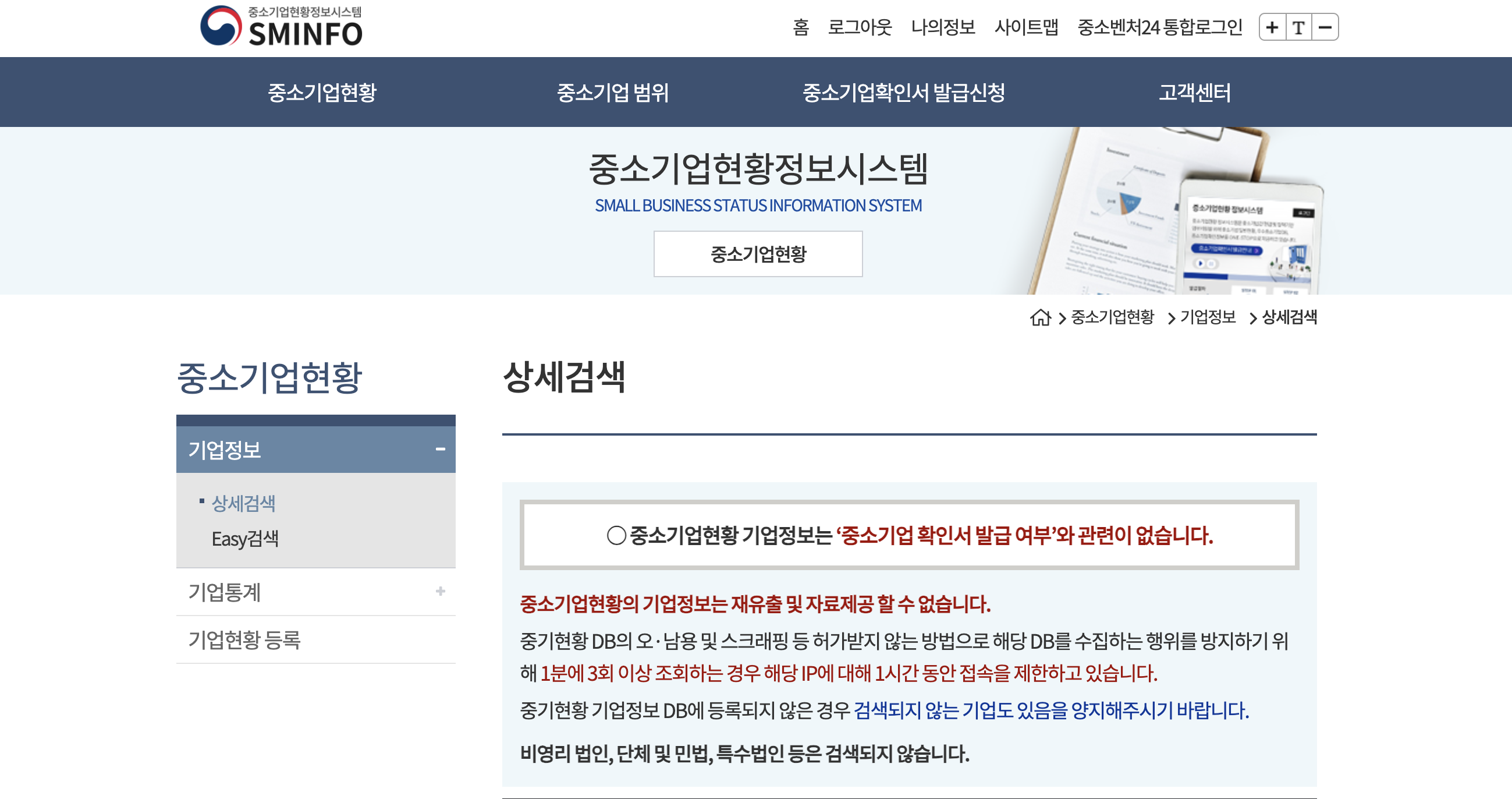 간단한 회원가입 후, 중소기업 현황을 검색하여 매출 현황 정도를 파악할 수 있습니다.