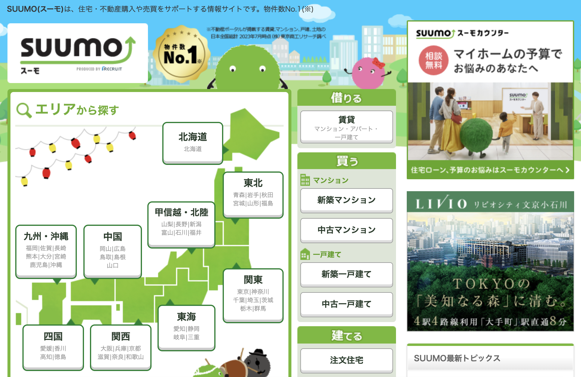 대표적인 서비스로는 [suumo, homes, at home]가 있습니다.